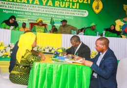 Posted on: May 7th, 2025 Mwenyekiti Jumuiya ya Umoja wa Wanawake (UWT) Taifa Mhe. Mary Pius Chatanda, pamoja na Waziri wa Nchi Ofisi ya Rais TAMISEMI na Mbunge wa Rufiji Mhe. Mohamed Mchengerwa, wameshuhudia utiaji saini wa m...